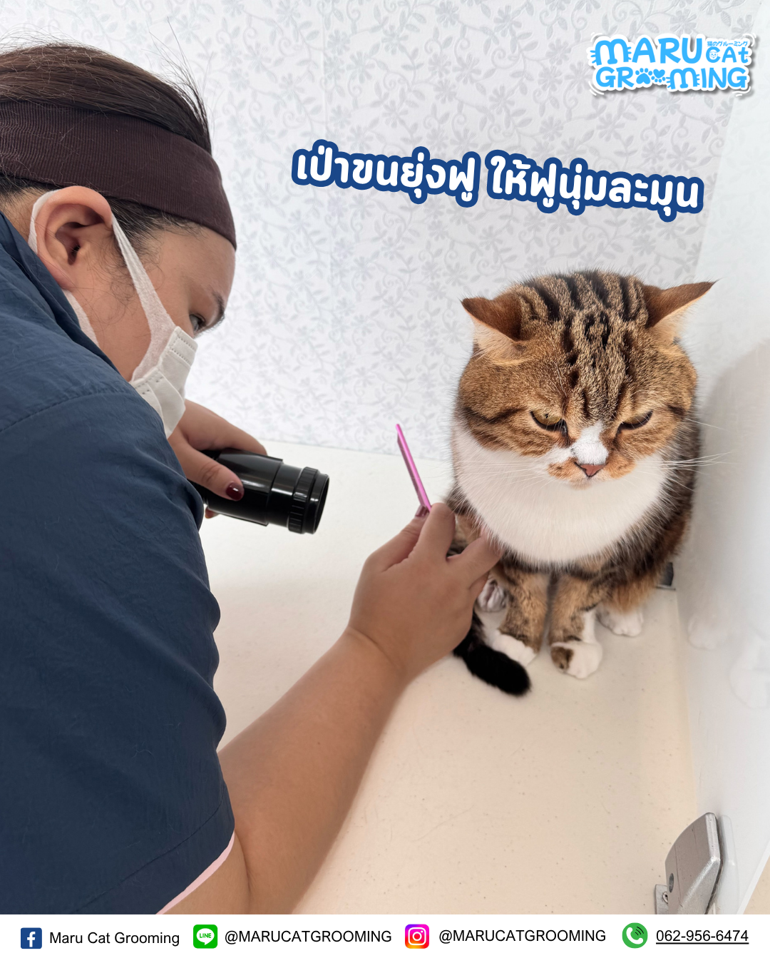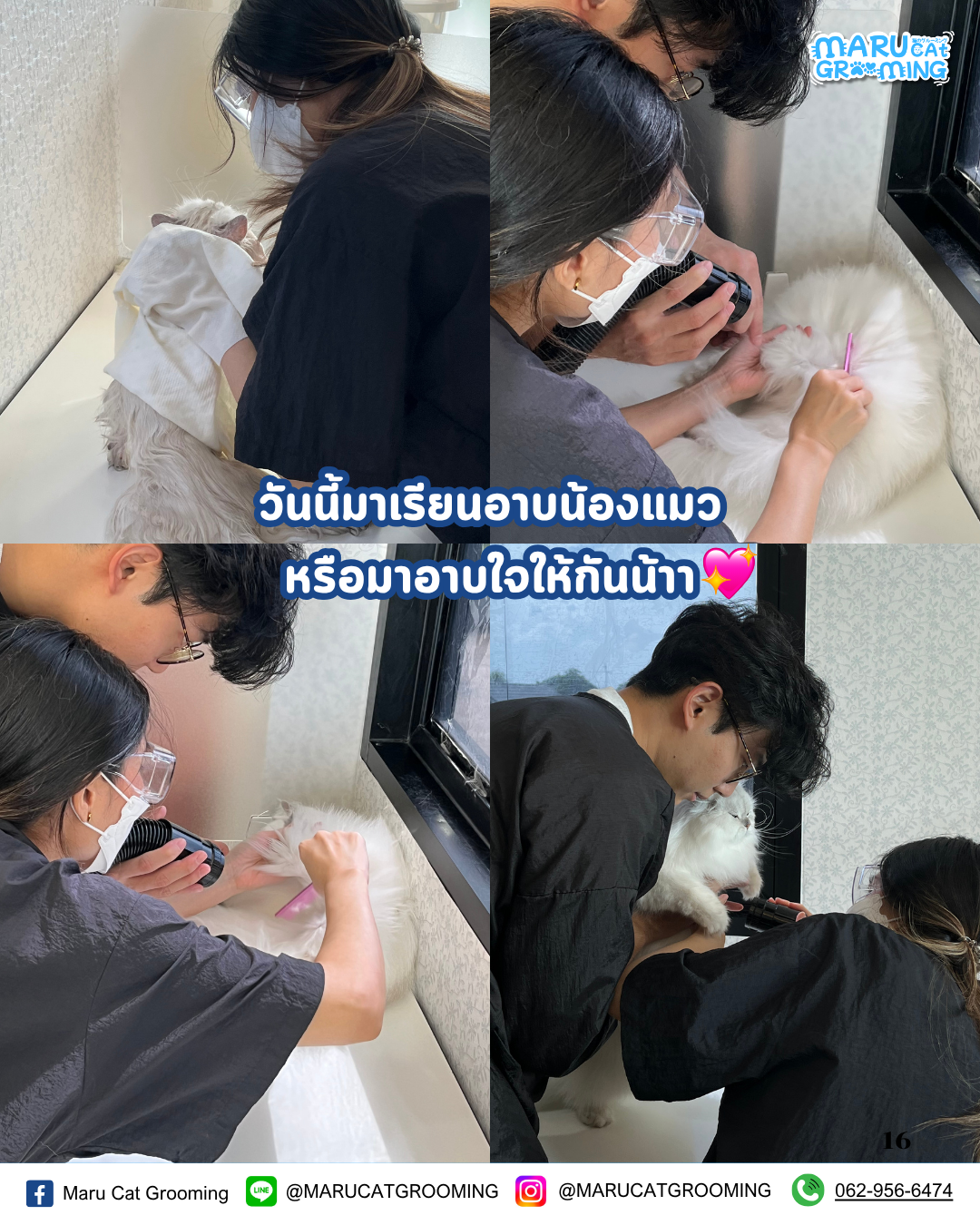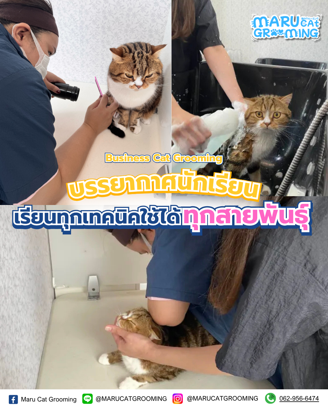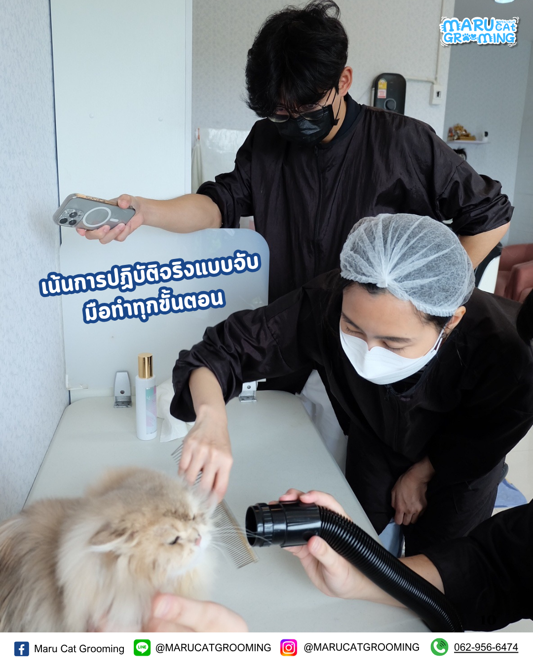 คลาสเรียนทุกคอร์สของ Maru Cat Academy ถ่ายทอดด้วยระบบ Maru 4S+ Grooming System Soft Start, Soft Handling, Slow Grooming, Soft Blow และหัวใจสำคัญคือ Soft Groomer