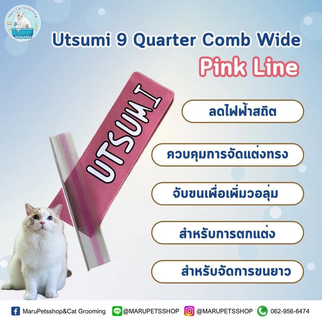 2.Utsumi 9 Quarter Comb Wide #Pink Line หวีสำหรับจัดแต่งทรงขน ปลายซี่เล็ก เรียวบาง มีน้ำหนักเบาจับถนัดมือ