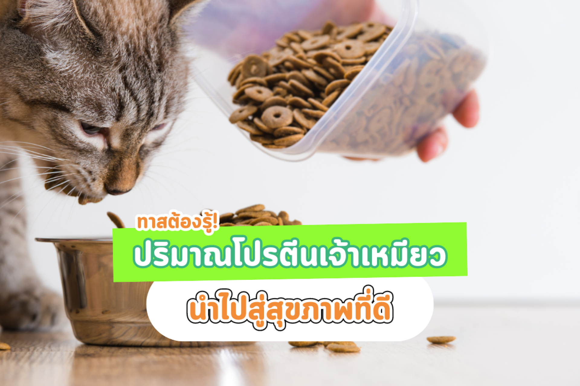 แมวส่วนใหญ่ต้องการโปรตีนประมาณ 35% - 45% เพื่อการเจริญเติบโตที่ดี โดยสามารถเช็กปริมาณโปรตีนที่แมวต้องการได้จากข้อมูลดังนี้: