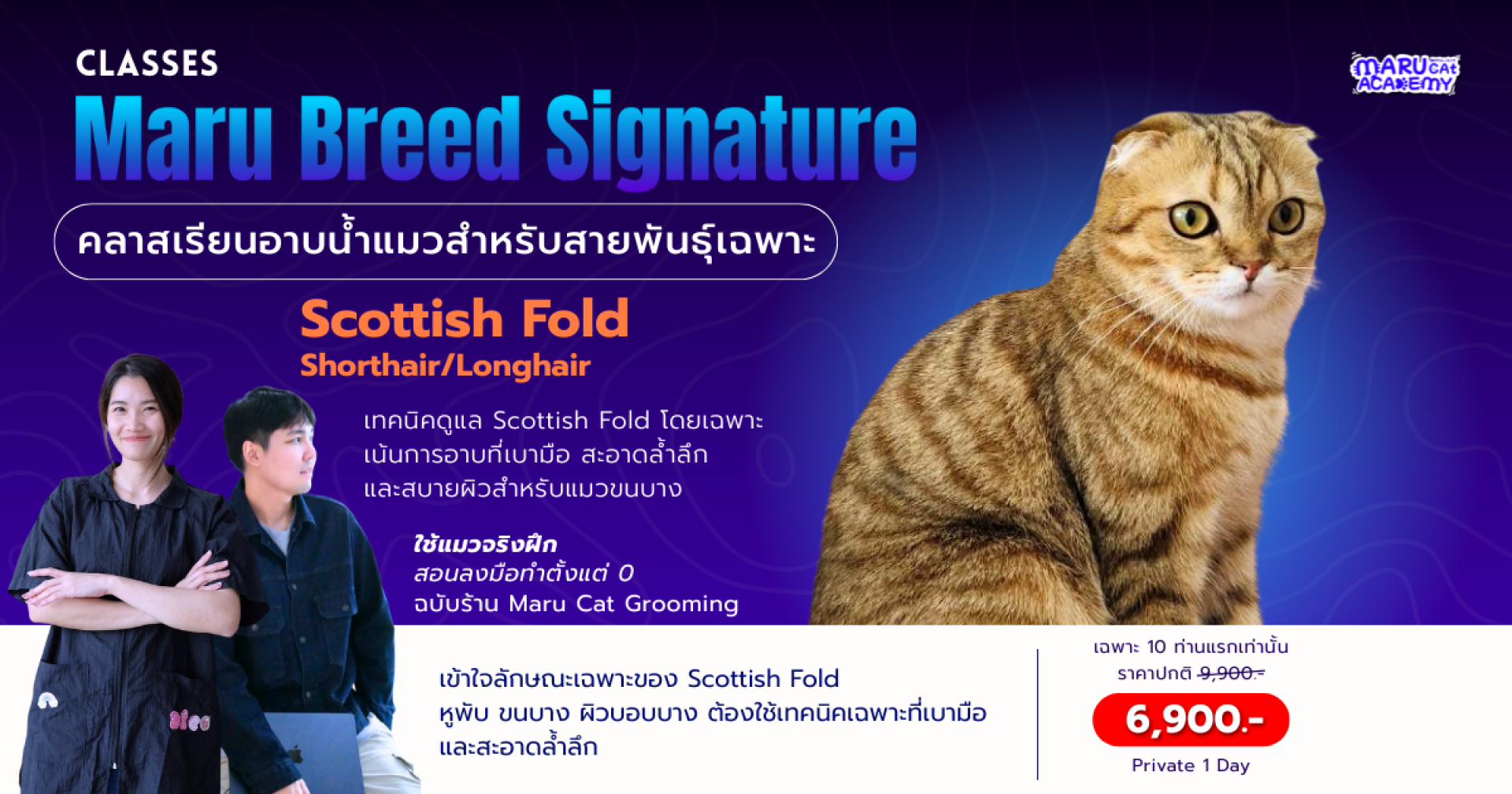 Scottish Fold Grooming Class – คลาสเฉพาะสายพันธุ์ที่ออกแบบมาเพื่อแมวหูพับโดยเฉพาะ