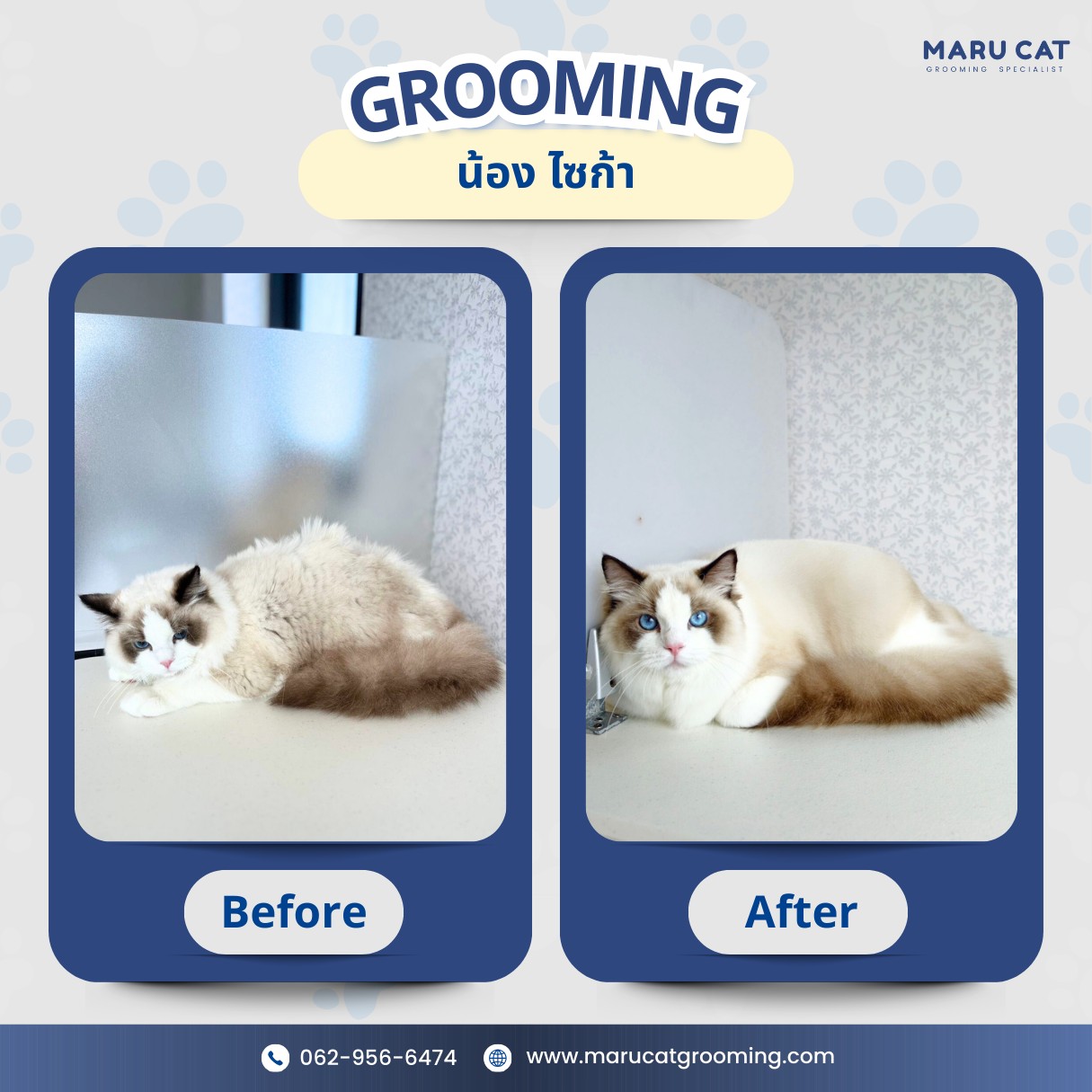 จองคิวผ่านเว็บไซต์: www.marucatgrooming.com (จองสะดวกตลอด 24 ชั่วโมง)